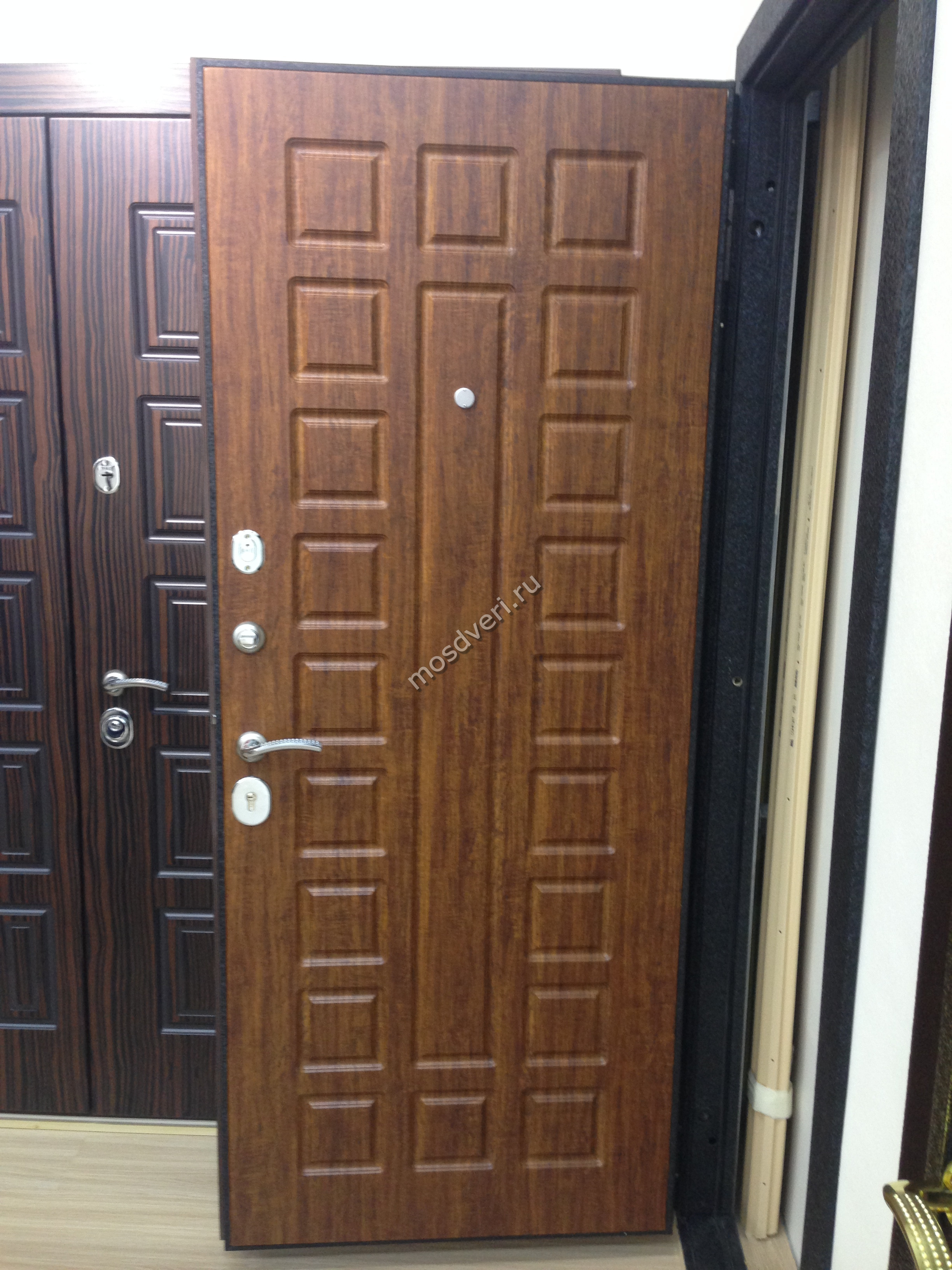 Ставил дверь родителям в квартиру. Они хотели что-то простое но надежное. Остановились на темном венге. Сталь толстая, сразу видно, что не китай. Просмотр каталога занял минут 40, выбор большой. Механизм дверного замка работает плавно. Рекомендую.